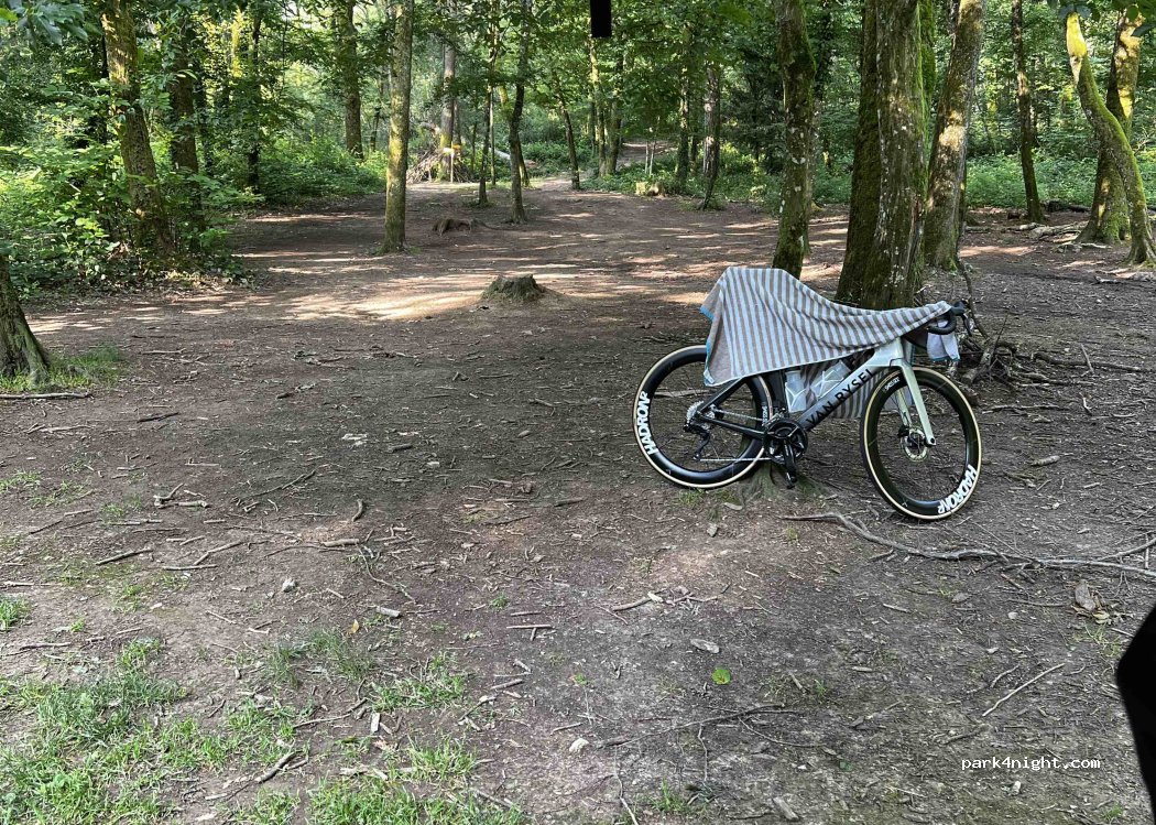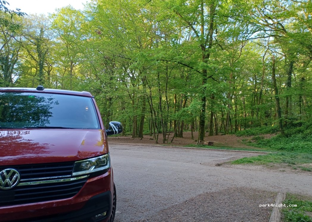 A busy car park in the middle of the forest. Quiet overnight once it got dark but traffic started quite early. Good reception, flat parking and felt safe. Lovely walks and cycling.