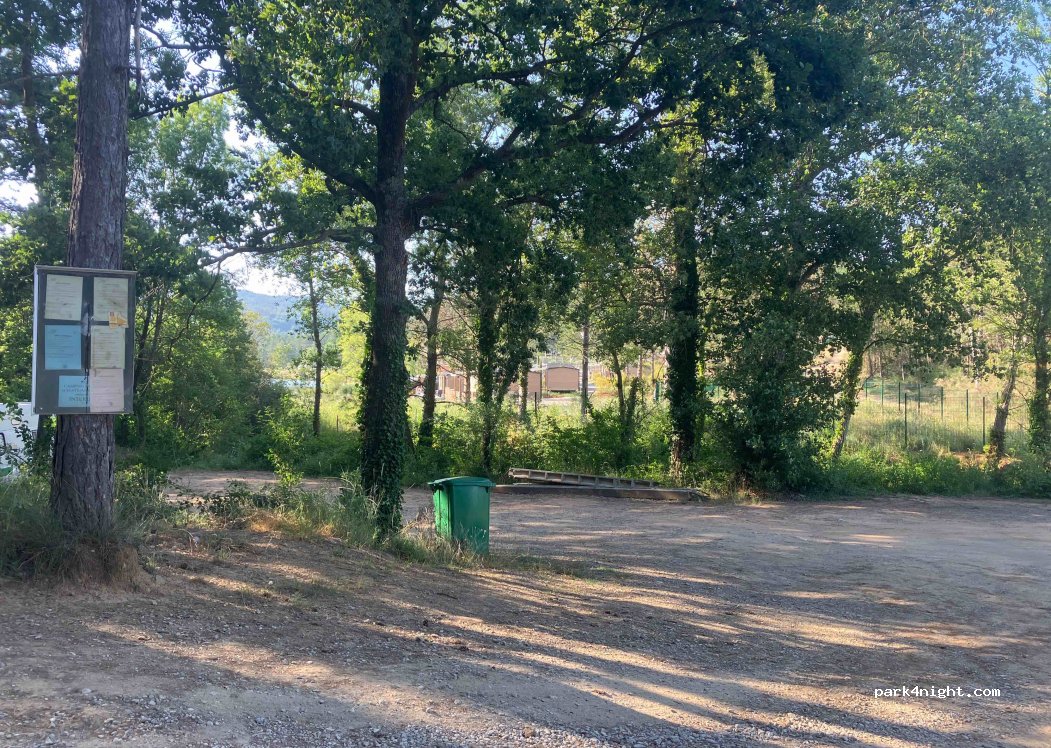 Very nice place near the lake of arques. You can park with a motorhome or converted truck. Trash on site.
