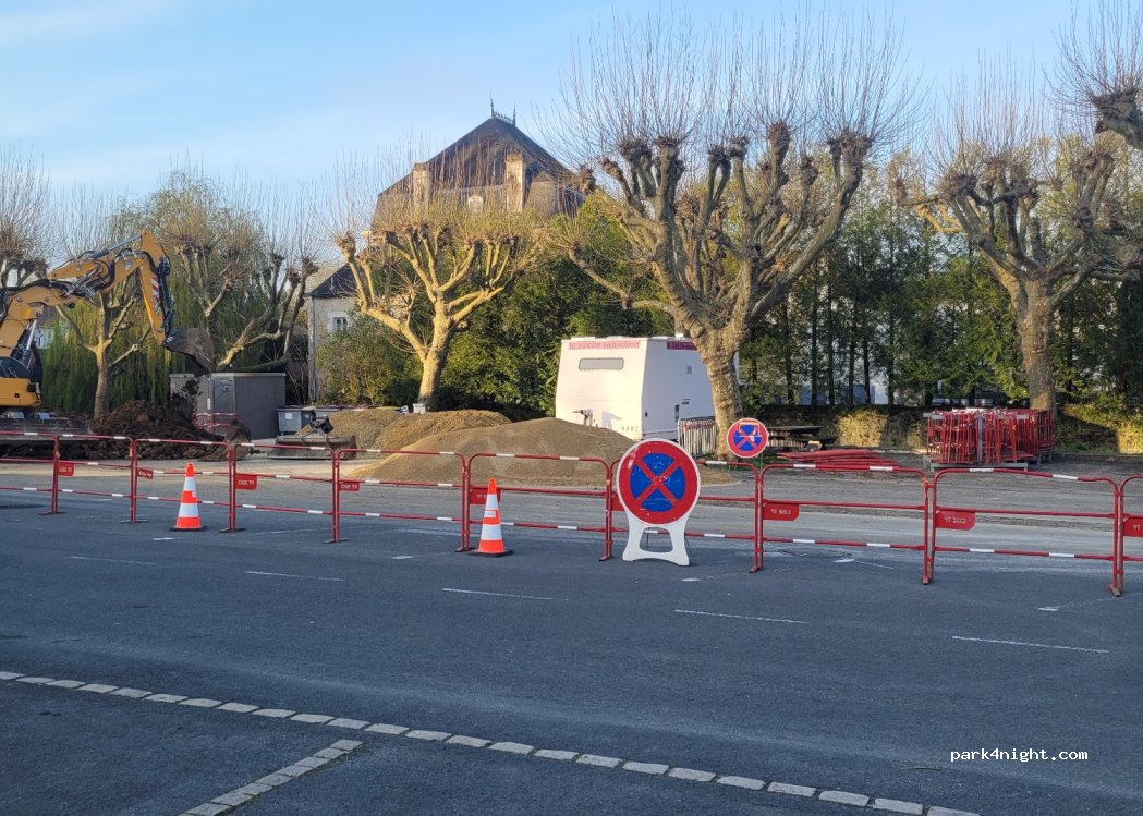 Parking sur une place en centre-ville. Bien pour la proximité mais pas très intime ! Calme la nuit mais le (grand) parking se remplit vite de voiture le matin donc abandonnez l’idée de prendre votre petit déjeuner dehors ! Je confirme aussi pour les étourneaux qui nous ont repeint la carrosserie ! Merci cependant à la municipalité de nous donner gratuitement l’occasion de passer la nuit.