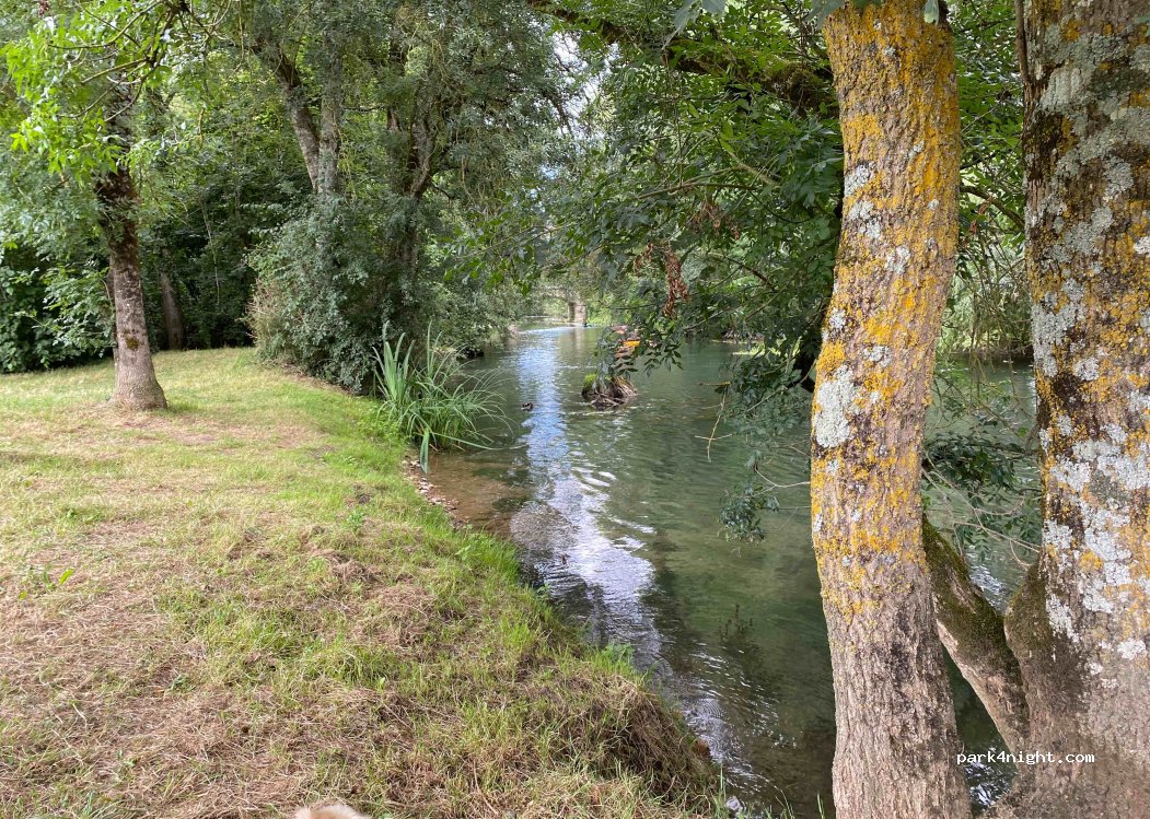 Parking calme au bord de la rivière accès très facile même avec grand véhicules.
