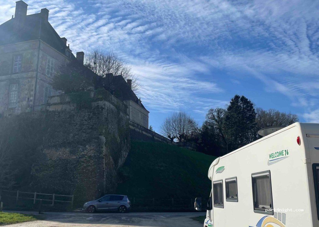 Parking désert et très calme. J’y suis resté 2 nuits. Une personne du conseil municipal est passé, un peu méfiante car ils ont des vols de bouteilles de gaz à la superette du village. Mais pas de souci pour rester si on est discret et respectueux.