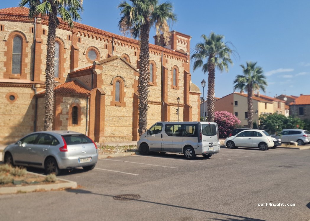 Ruhiger Parkplatz für die Nacht und den Tag, um die Kirche zu besuchen, 4 km von Perpignan entfernt.