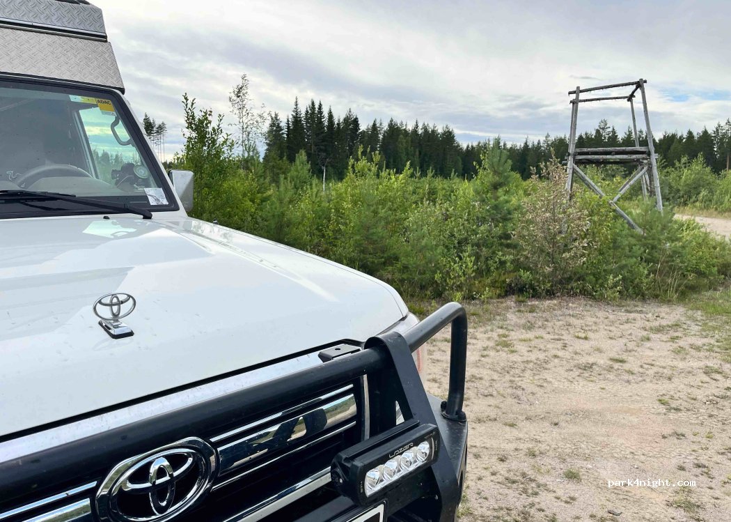 Mitten auf eine freuen Hochfläche im Wald erreicht man über eine Forststrasse diesen Platz neben einem Hochsitz. Es ist flach und gibt eine kleine Feuerstelle, die aber bei sehr trockener Witterung nicht benutzt werden sollte.