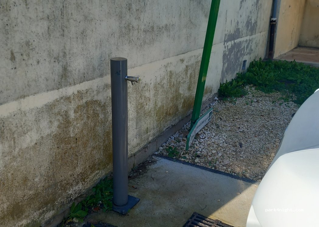 Merci à cette commune, ici uniquement les services vidange eau grise, noire,WC. Eau propre, gratuit....parking 200m plus loin