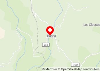 Liegt an der C5 an der Kreuzung mit der D35, in Richtung Ruas und Flora, 20 m rechts.