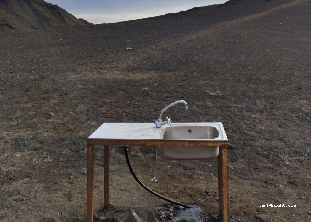 Wir standen alleine, was absolut magisch war. Neugebautes Ranger – Haus mit zwei sehr guten Toiletten; das mitten in der Landschaft stehende Waschbecken ist wie eine Skulptur. Eine absolute Empfehlung, wenn man gerne eine Nacht in absoluter Abgeschiedenheit verbringen will. Ich komme wieder! Die kurze Wanderung oben auf den Aussichtspunkt zum atemberaubenden Blick über den See ist lohnend!
