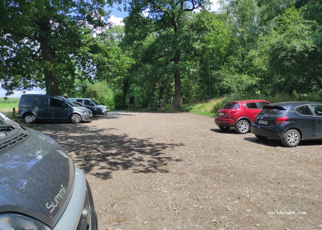 Parking le long des bois, départ de nombreuses balades dont celle de la Roche aux faucons.