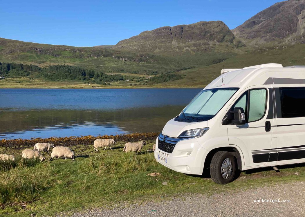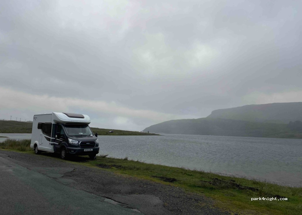 A nice space for 1 van facing the Loch. The small road is very quiet. Only sheep can bother you?. Thank you for leaving clean we are tolerated here.