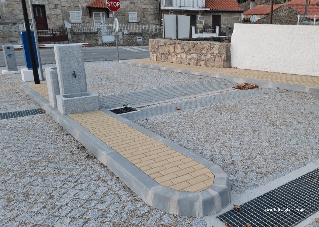 Área fantástica, calma e sossegada. Próximo a aldeia de Sortelha. A área de despejo da água cinza e negra é junto, em uma grelha perto da saída, como nas fotos. Para retirar o ticket na entrada e passar na saída é preciso chegar a Autocaravana bem perto da cancela, pois existe ali um sensor que não funcionará se não estiver bem próximo. O local possui câmeras de vigilância e wi-fi.