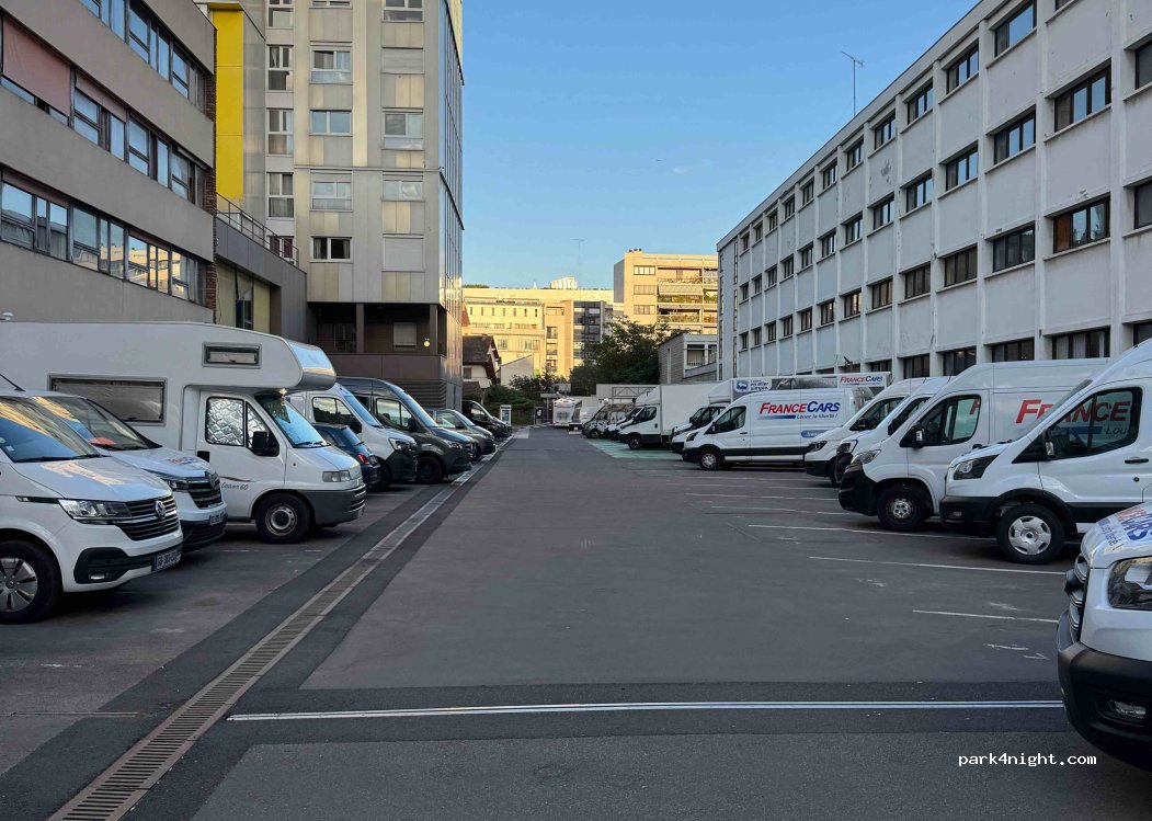 Perfect parking to visit Paris, 5 minutes from the subway. 30 minutes by foot to the Seine. Very quite at night. Very safe neighbourhood. Large parking spots so even for very large campers it works very well. We payed 35€ for 24h. Totally recommend it