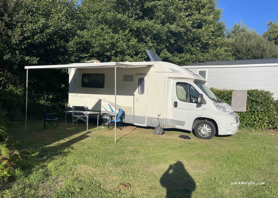 Camping très calme, bien situé pour visiter le pays fouesnantais. Grands emplacements avec eau et électricité. Douches propres et chaudes. Piscine chauffée et toboggan pour les enfants. Accueil très sympathique. 21€/jour pour 4. Bon rapport qualité/prix.