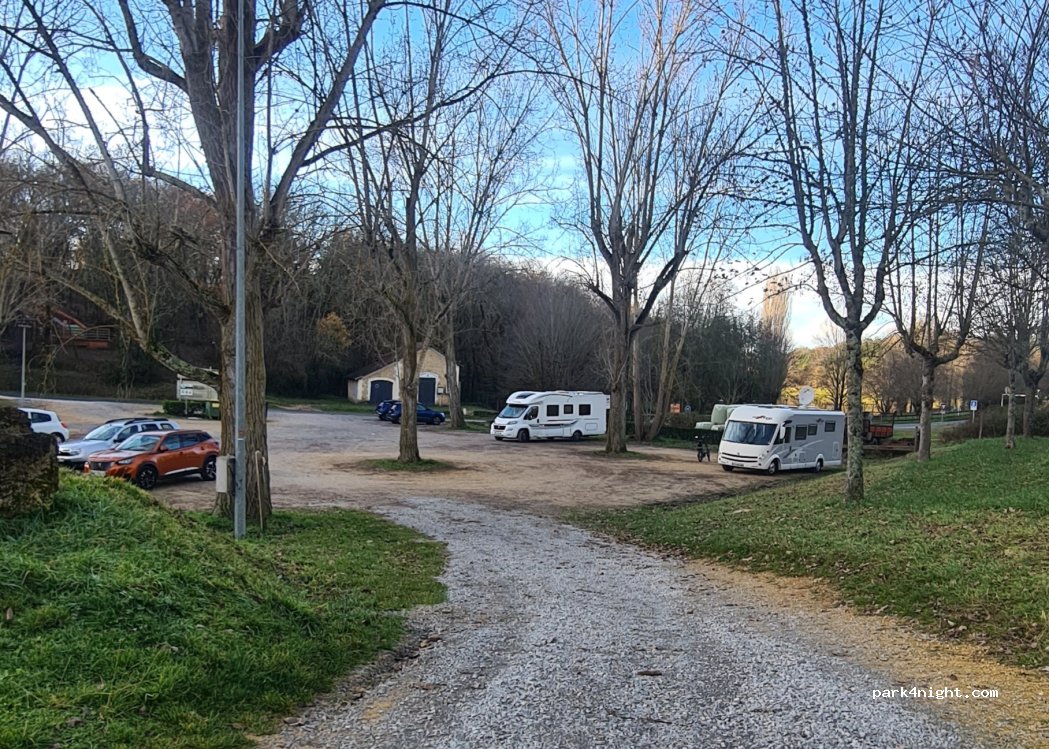 parking plat et propre. poubelle au bord de la route. calme, route peu passante. pas d'éclairage public. c'est un endroit parfait pour la nuit, pourvu que vous n'ayez pas peur d'être éventuellement le seul Ccar dans le noir absolu. on y a passé une nuit agréable.