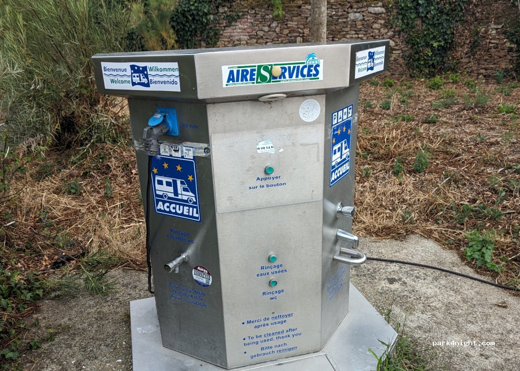 Aire très calme. Pas trop de monde . Les places sont convenables. 8,50 avec les trois services. Très convenable. Merci à la municipalité. Cricriraleur