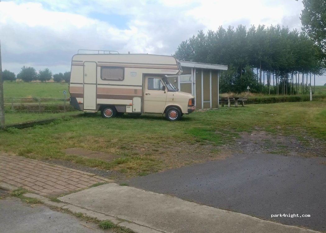 C’est un bel endroit passage de la route à proximité, mais rien de trop dérangeant. 1 place parfaitement plane et d’autres en pentes. Réseau 4G. Espace ouvert pour la recharge solaire.