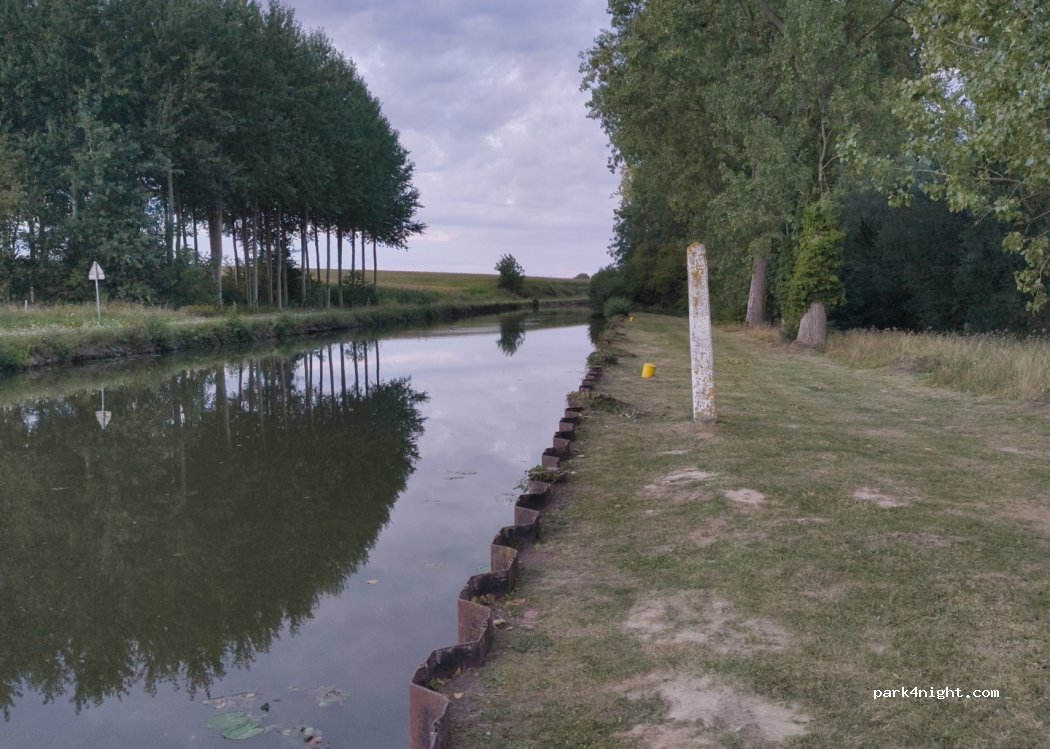 Petit parking au long du canal, places de taille moyenne, banc de pic nic et poubelle disponible, gardez cet endroit propre ❤️