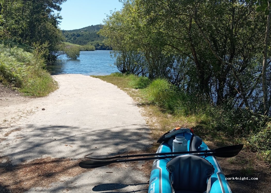 Pequeño rincón tranquilo junto al agua. Lugar perfecto para pasar la noche y nadar también, también forma parte de la antigua carretera nacional que quedó sumergida cuando construyeron la presa de Lindoso. Es un embalse por lo que es perfecto para nadar y pescar, el agua no está tan fría. Tenga cuidado al pescar, necesita una licencia para hacerlo. Aunque parezca difícil dar la vuelta a tu coche/caravana, hay un poco de espacio para hacerlo, sólo echa un vistazo a tu alrededor. Este lugar está detrás del camping, así que si necesitas algo sólo tienes que dar la vuelta y entrar al parque para visitarlo o ir al bar/pequeña tienda.