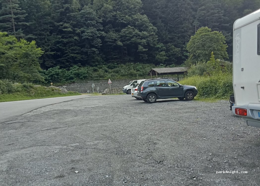 Endroit qui dépanne vraiment, surtout depuis qu’on ne peut plus aller le long du bâtiment des anciens thermes à 100m. Calme la nuit, quasiment pas de passage. En journée, beaucoup de passage, c’est la route du Pont d’Espagne. Idéalement placé pour partir en rando à la fraîche le matin. Légèrement en pente, mais facile à gérer pour un van.