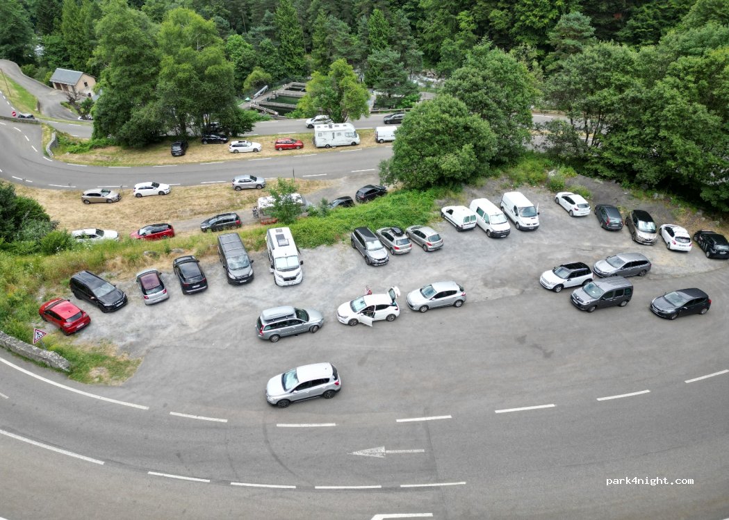 nous nous sommes installés au parking juste avant un peu ombragé côté gauche pour être sur du plat. endroit sympa. étant proche du ruisseau prévoir des affaires chaudes.