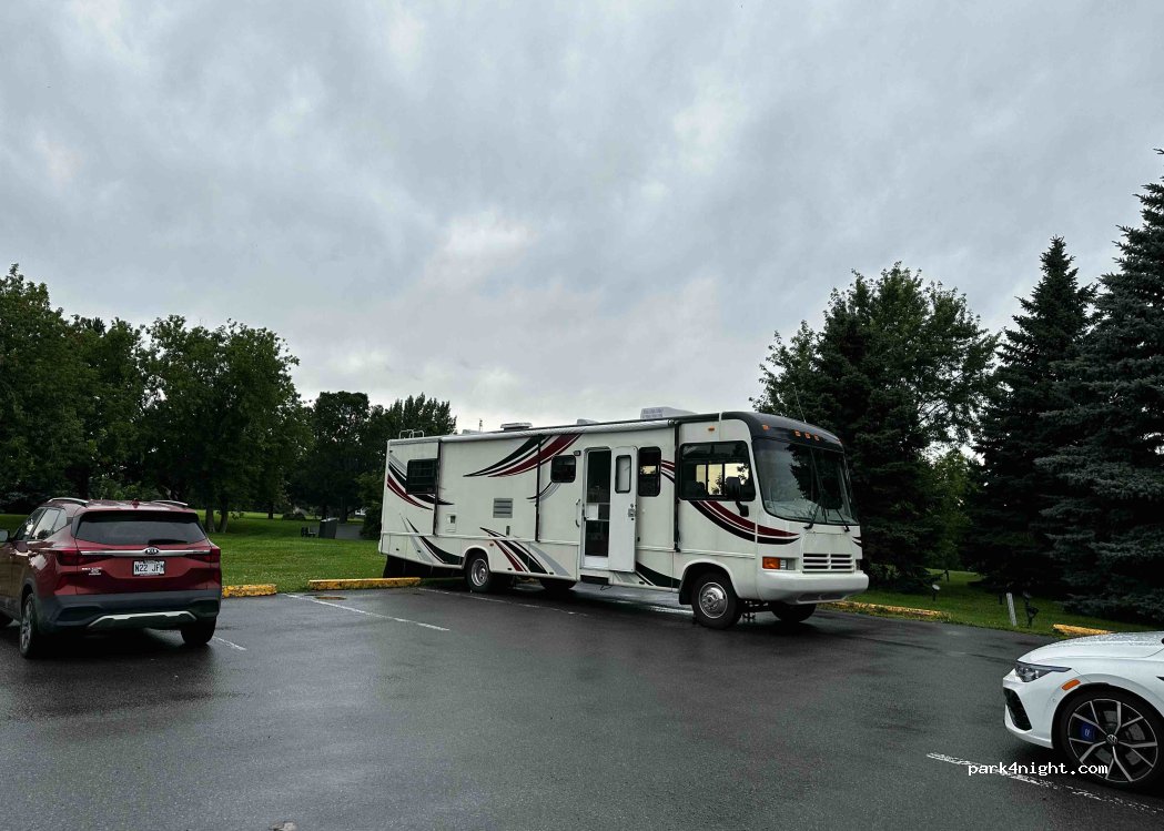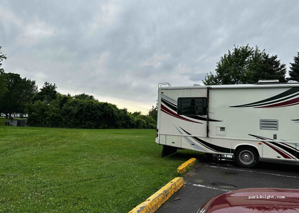 Ville Saint-Catherine municipal parking lot. No residence ban. Bordering seaway canal and bike path. Green park ideal for picnics or for children to play. The space is large enough to accommodate an RV up to 35 feet. Near the Récréo-Parc.