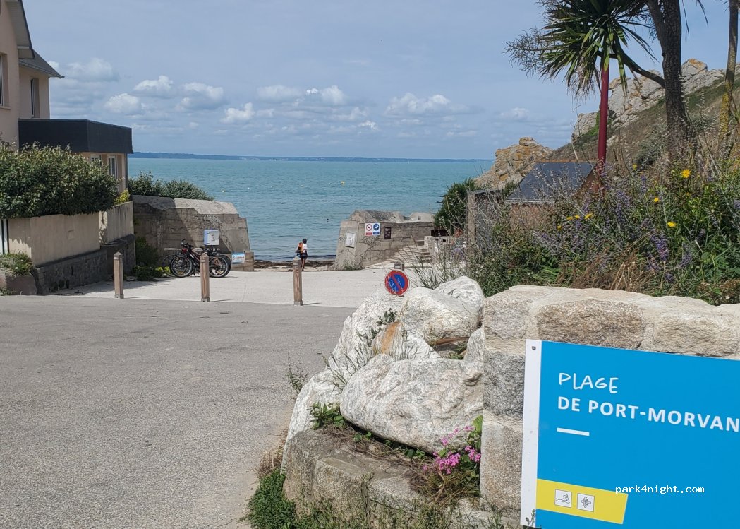 endroit calme et propre. plage de Port Morvan a 3min a pied (200m). entrée serrée mais de long camping car sont entrés.