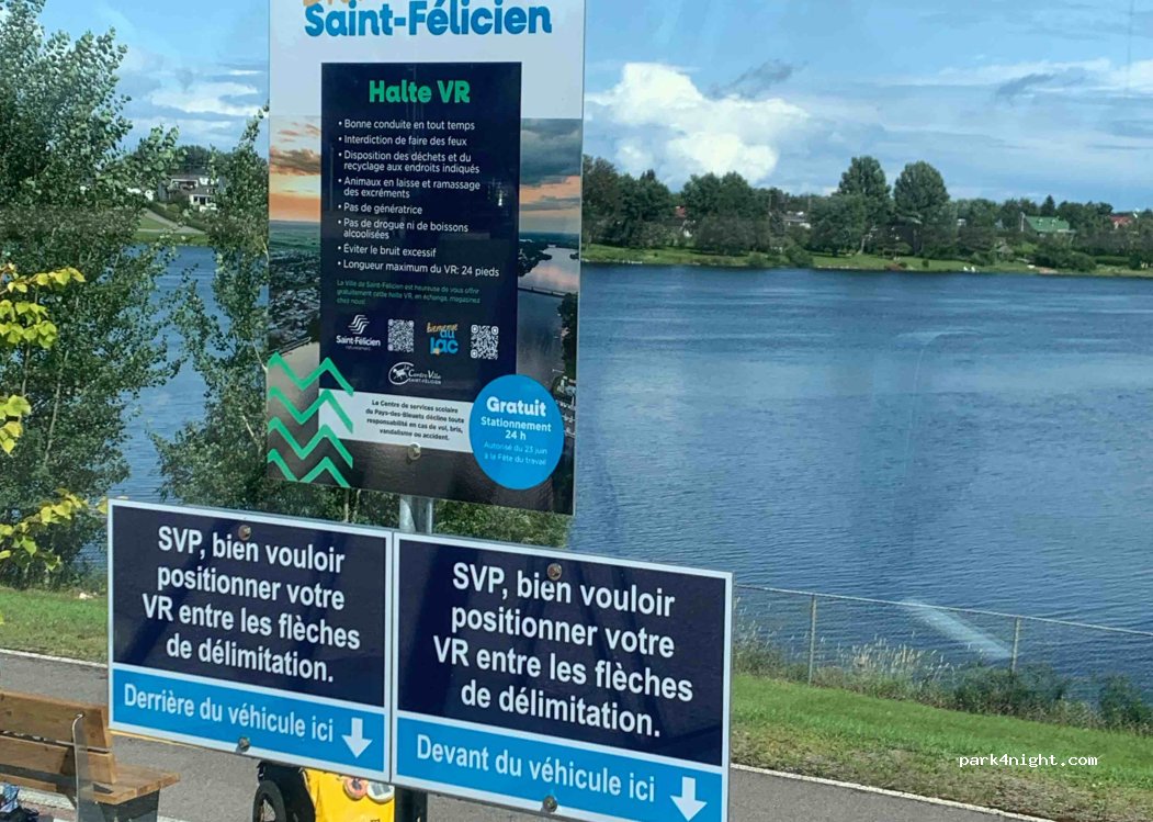 Halte VR a St Félicien, superbe vue, 2 stationnements pour grands VR, plusieurs espaces pour grandeur automobile, toilette, eau potable, bancs, WIFI, au centre ville près des services, piste cyclable