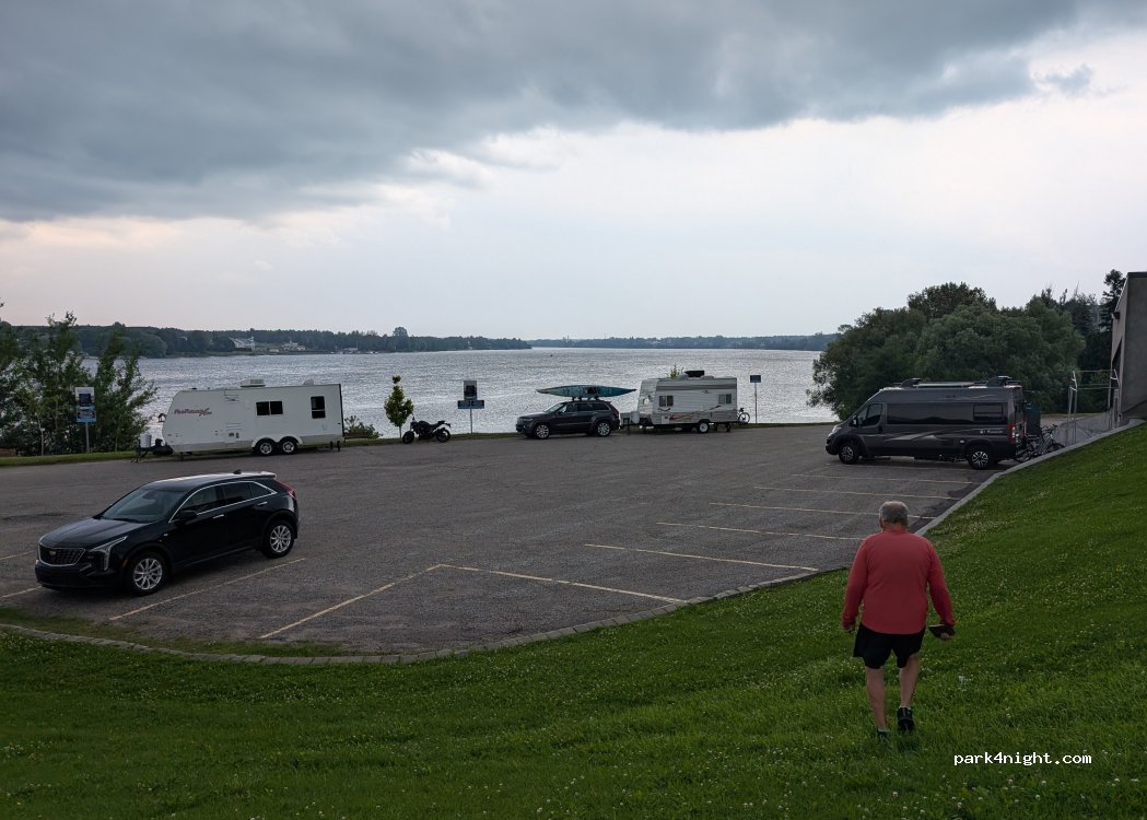 Beaucoup de places disponibles, belle vue sur l'eau, près de tous les services. On entend vraiment bien la route par contre mais pour ma part, j'ai très bien dormi!! Toilettes à disposition. Conteneur à déchets et recyclage, plus loin dans le stationnement. Adjacent, un petit commerce qui propose quelques repas sur place ou des portions de mets traditionnels déjà prêtes pour la route!!