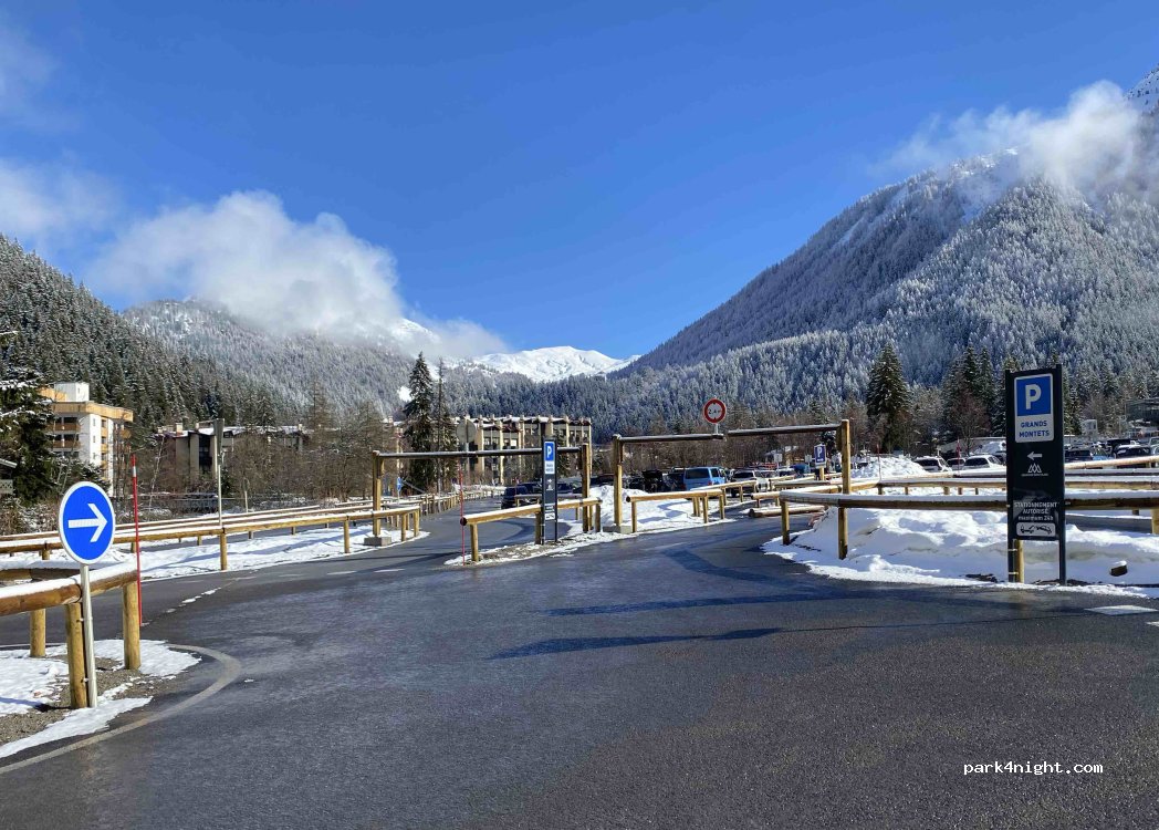 Aunque no está señalizado como área o parking de autocaravanas, lo cierto es que se puede estacionar sin problemas, gratis. Servicio de vaciado/llenado de aguas, magníficas vistas y junto a la parada del bus 2 (gratuito) que pasa cada media hora hacia Chamonix.