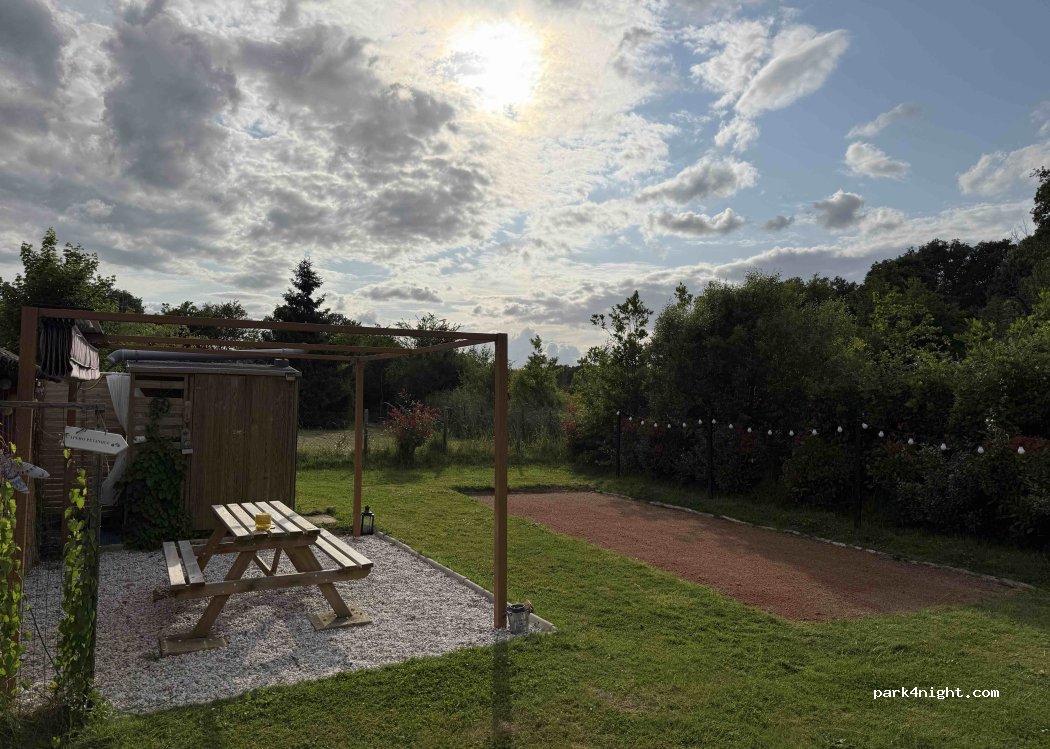 À recommander ! Nous avons été très bien reçu ! Nous y avons passé une nuit à deux camping-cars, famille très agréable, chien adorable, environnement en foret avec des balades à faire. Super cabane au fond du jardin, avec un très beau terrain de pétanque et aménagement pour s’y poser !