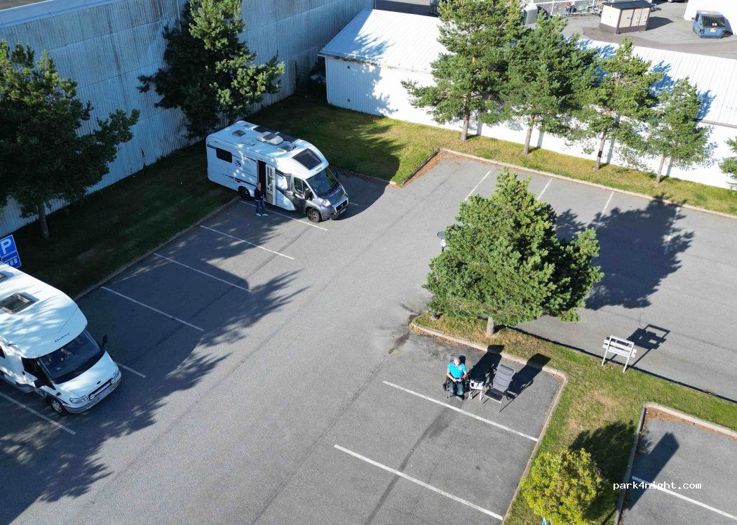 Reiner Parkplatz an einer Wendeschleife. Für Mobile über 6,50 m ist das Parken nur an der Hallenwand möglich. Aussicht nicht sehr idyllisch, da man auf den Tiefseehafen von Mäntyluoto blickt.