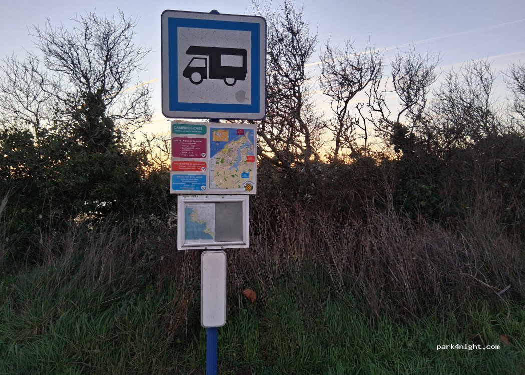 Endroit à éviter. Simple parking au bord d'une départementale sans aucun service... Les toilettes publiques sont à 300 m... Vue sur le marais asséché d'un côté et sur l'embouchure de l'autre. Vous êtes réveillés à 8 h par l'ASVP qui vient encaisser. Ça coûte 7 euros la nuit !!! Aucune indication de paiement sur le panneau.