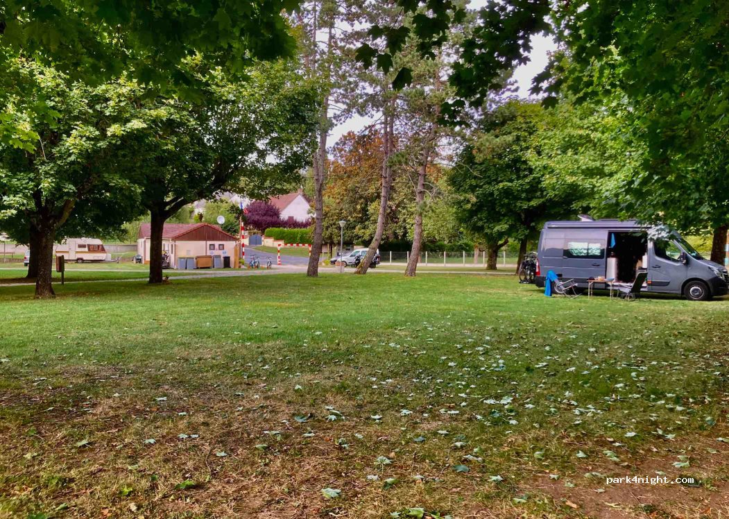 Nice campsite, next to the swimming pool (municipale) with a small bar and snacks. What a rest. Nice historic town within walking distance (bakery, butcher, etc.)Typical French market on Monday