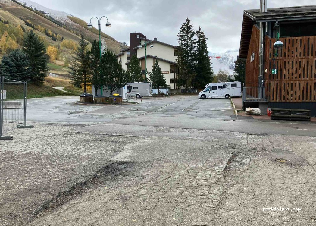Nous avons été délogés par les pompiers. ils ont élargi le périmètre de sécurité autour du bâtiment contigu incendié l'hiver dernier. Le parking pour les camping-cars est au bout de la station, à côté du stand parapente.
