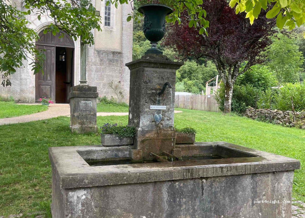 Bonne eau potable devant l'église, il est possible de s'arrêter brièvement pour remplir les bouteilles d'eau