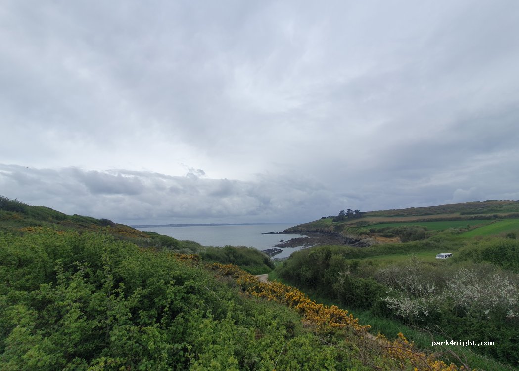 Petite clairière protégée du vent et à 50 m de l'océan, facile d'accès par un chemin carrossable, limité au véhicules inférieure à 2m , ideal pour les van, suivre anse de ty mark , attention à Google Maps qui voudrait vous faire passer par une propriété privée.