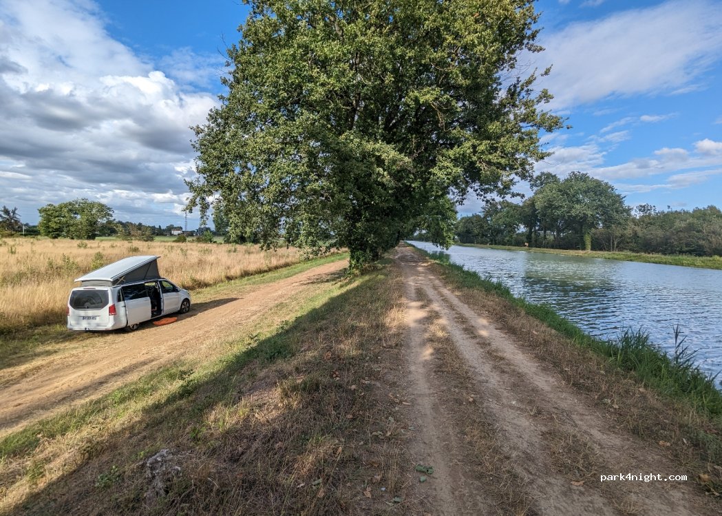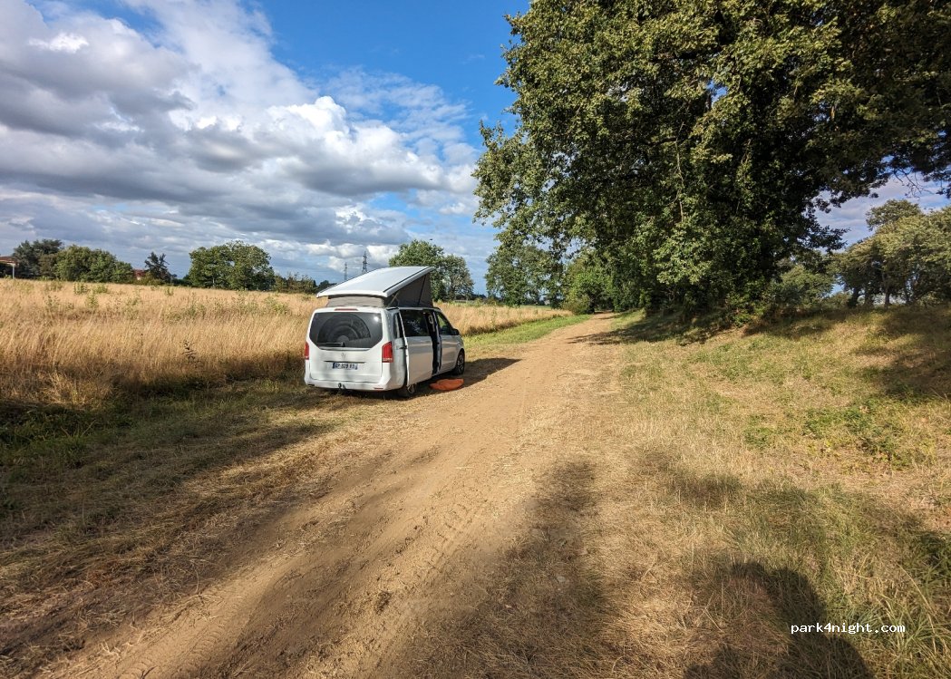Quelques mètres en contrebas de la rivière. très calme. accès par chemin en terre, sans difficulté. éviter les gros véhicules. En van, parfait.