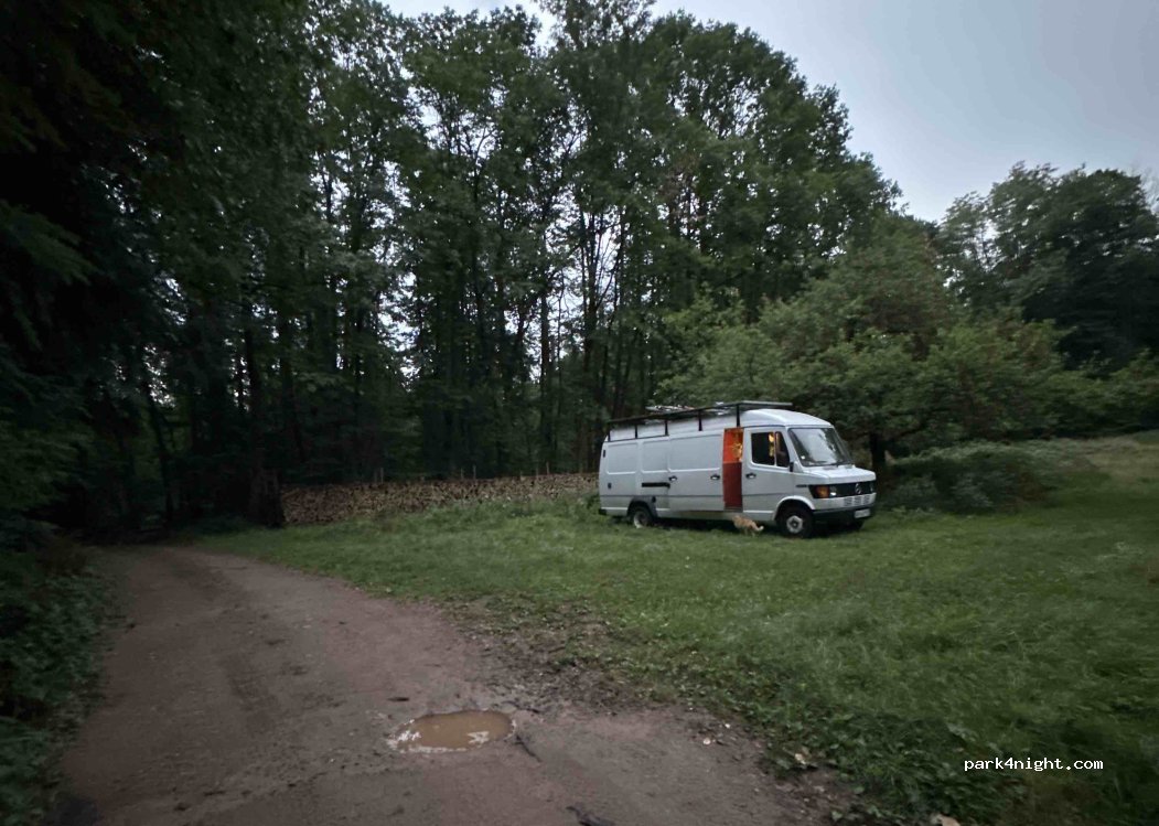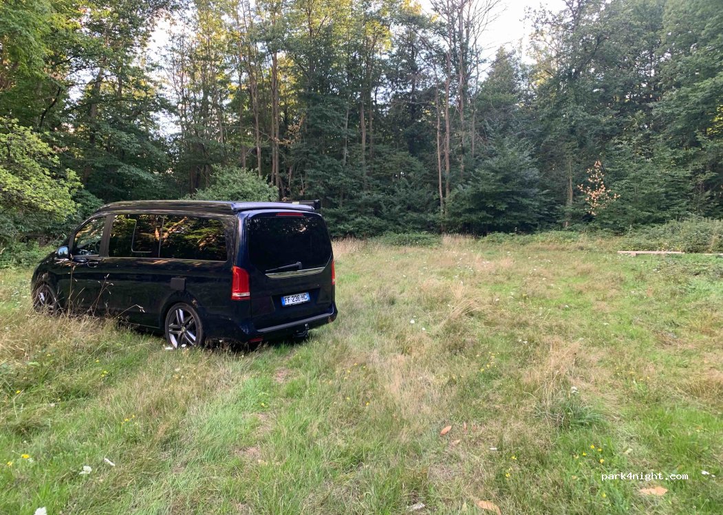 Very quiet clearing away from the road, accessible by van or 4x4 only. Flat area on the entrance to the clearing, the ground of the clearing is very stable to turn around if necessary. You have to take the path on the left of the road going from Riquewihr to Hunawihr, after 200m in the forest, the clearing is on the left.