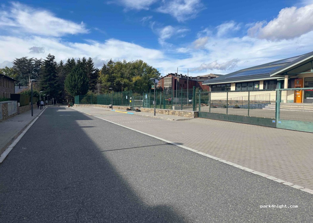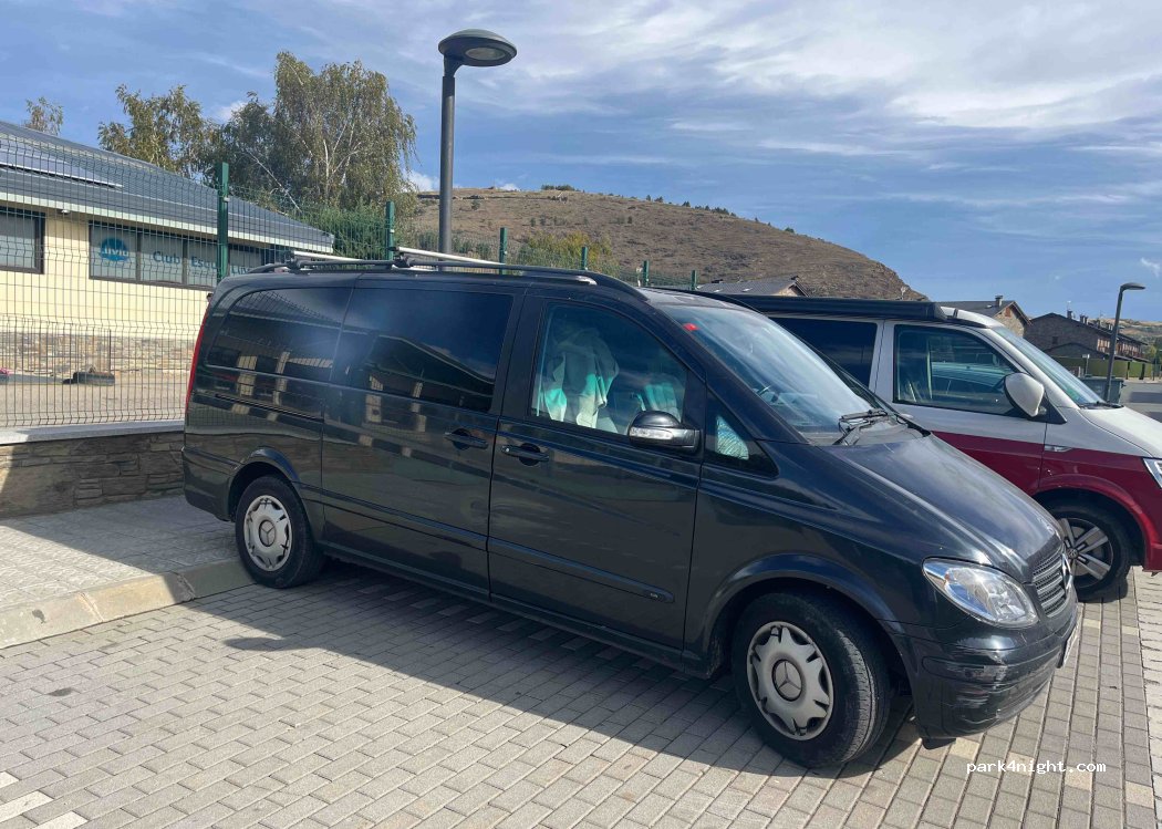 Parking en bateria, zona muy tranquila y segura. Solo para furgonetas medianas o pequeñas. El mejor para dormir en Lliva.