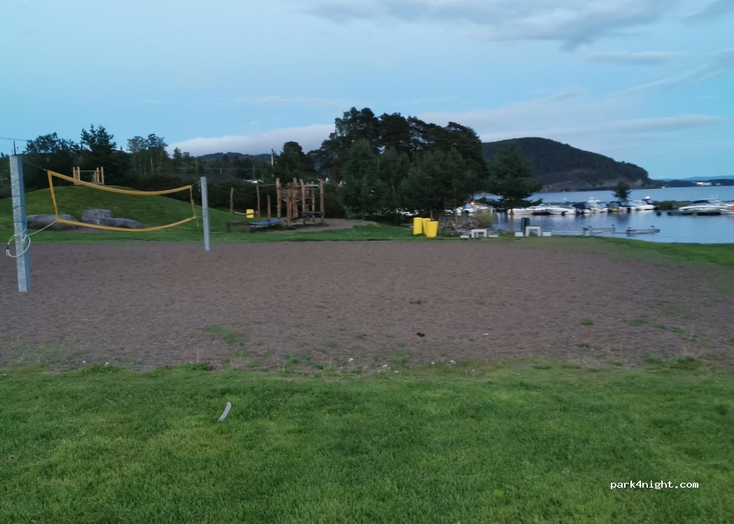 Veldig fin plass, stille og rolig. Fin lekeplass med benker, mulighet for å bade fra badestranda, grei parkeringsplass, kom flere og overnattet mens vi sto parkert