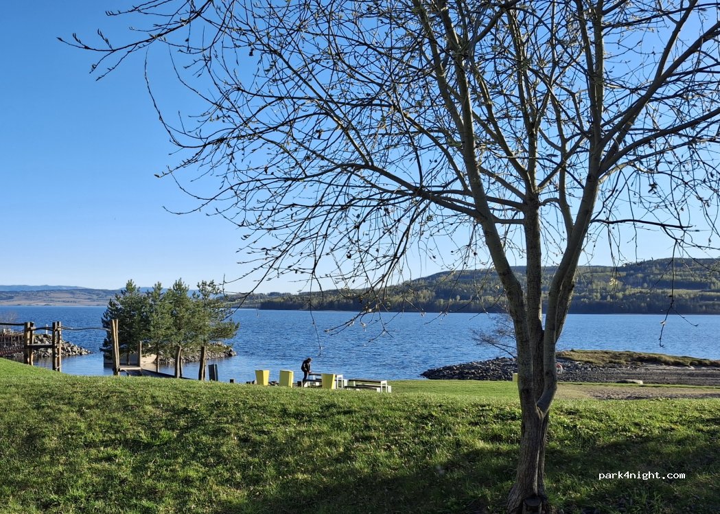 Super spot pour passer la nuit, bord de lac avec baignade possible, jeux pour enfant, etc bruit du train jusqu'à minuit