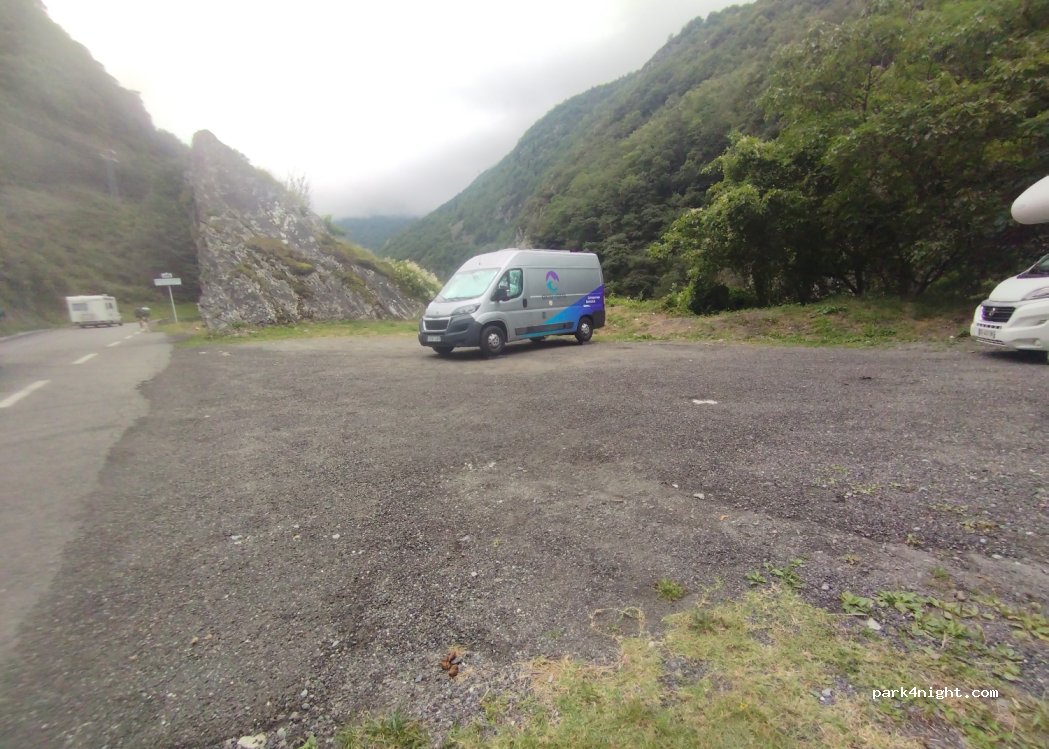 Bof bof mais bon ça dépanne vraiment ! Pas + de 4 camping car. Genre de parking en bord de route. Attention grosse falaise en bas. Mais il y’a de l’ombre.