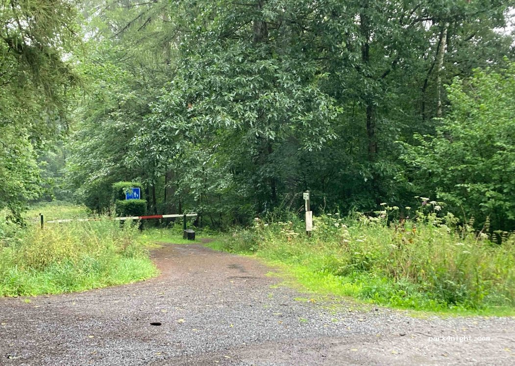 Me and my partner Leah stayed the night and didn’t get disturbed, nice quiet and peaceful woodland carpark. Keep it clean please it was clean when we arrived. Not suitable for vans longer than 5m and it’s not very flat but flat enough to not have to get your silly levelling blocks out. Ideal stop for one night
