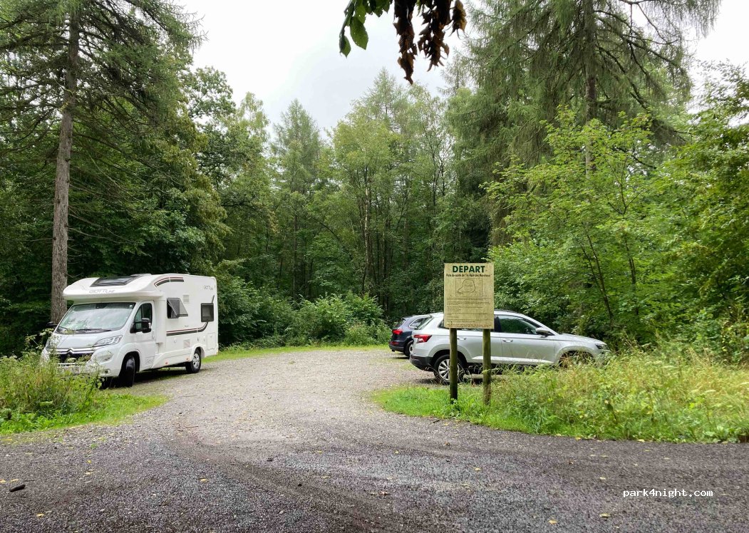 Departure parking for health walks, in the heart of nature. Rather flat. Close to a Ravel. We spent a quiet night (lulled by the sound of the rain). Easy access. 2 car parks available. A few walkers arrived on Sunday morning.