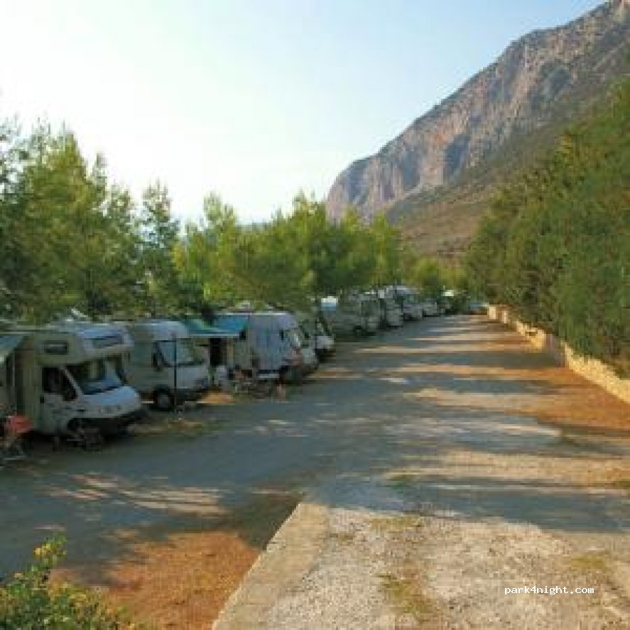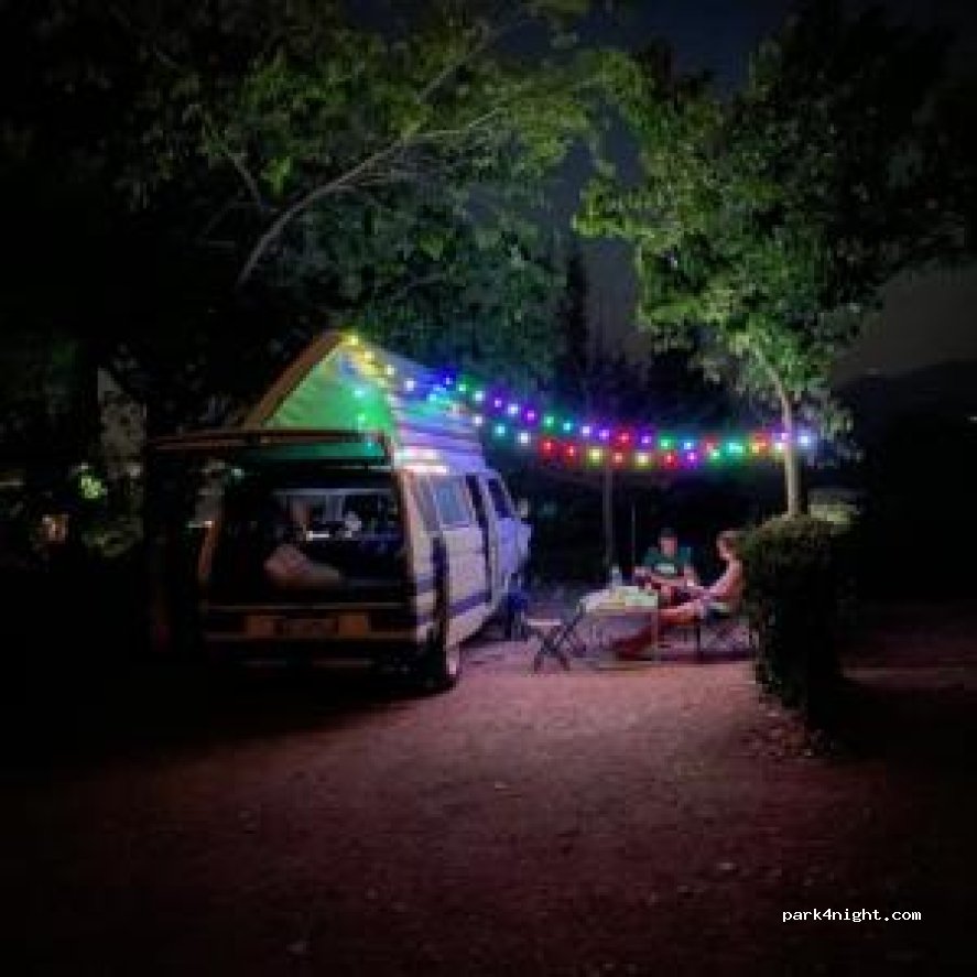 In Delfoi is prohibited to park for night, you must go to camp. We stayed here for two days, everything was perfect. The personal were very nice and helpful. Place is very safe, a lots of natural shadow for the wan, the ground is flat, close to the city. Bathroom, laundry, mini market, taverna all OK. For the big wan, electricity, 2 adoults and two kids we payed 40€/night.