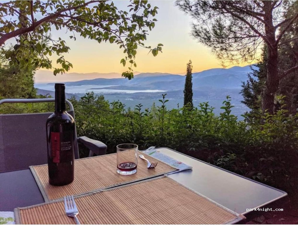 Great location with a superb view till the Gulf of Corinth. A few km till the historic site at the other side of Delfi. We were there during the global forum (April 10th). Sanitary facilities are old but still acceptable.