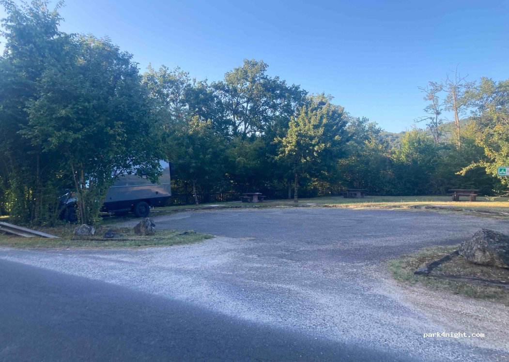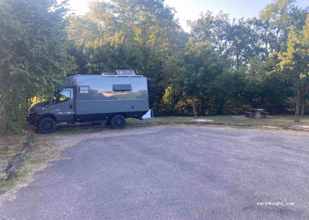 Ok parking, Ok table, pas de poubelle ou de toilette. Par contre niveau passage c'est terrible pourtant je suis assez laxiste en général mais là, grosse route avec beaucoup de passage très tôt le matin.