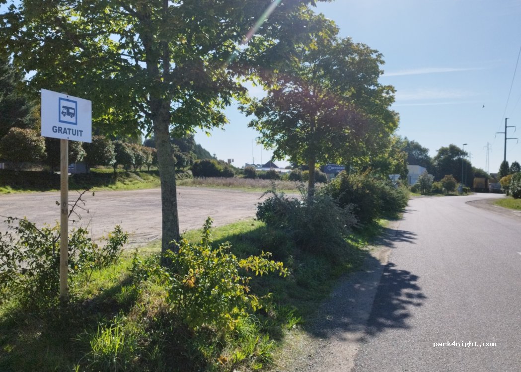 ce parking sans commodités à le mérite d'exister dans cette commune où le stationnement des CC est difficile. Situé à moins d'un kilomètre du centre et du port. Pas de restriction nocturne mais proche de la route direction Redon (non testé de nuit)