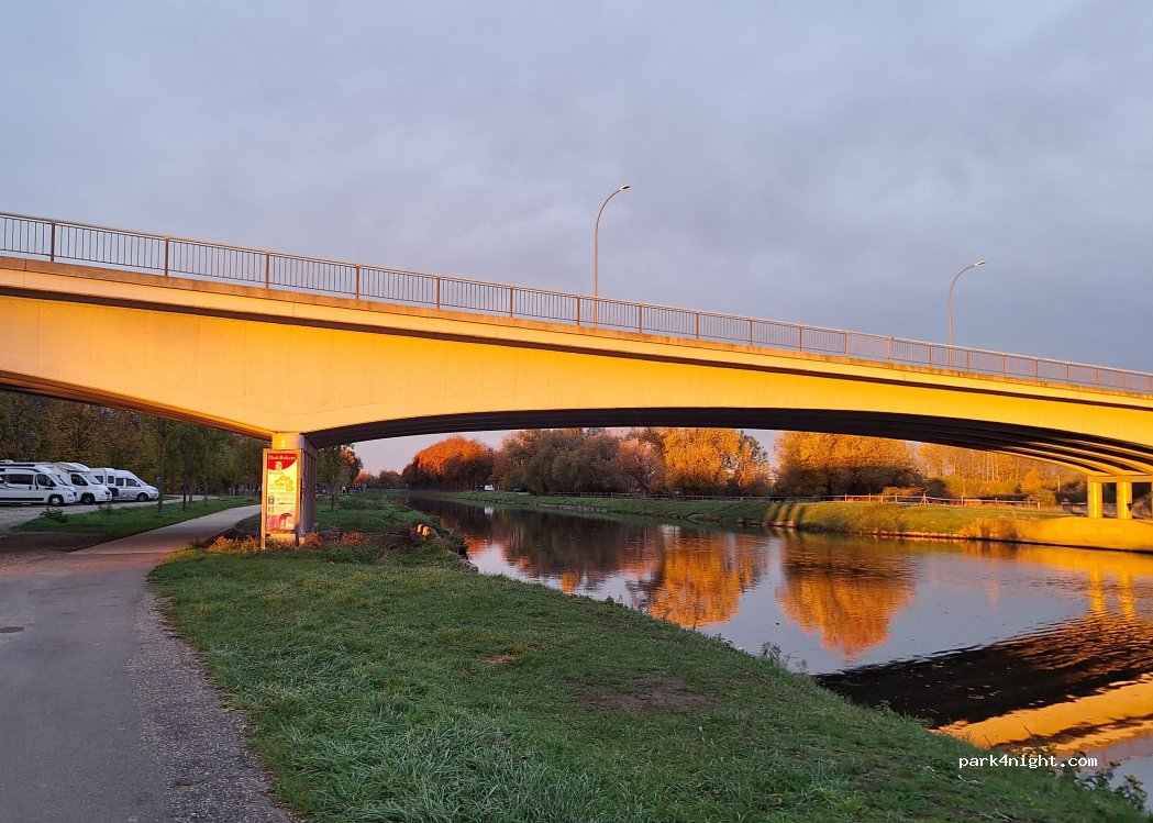 Für eine Zwischenübernachtung idealer Platz. War leider schon überfüllt als wir ankamen. Weiter vorne am Kanal sind noch PKW-Stellplätze die dann von den Wohnmobilen genutzt wurden. Strasse ist etwas unruhig, in der Nacht aber kein Lärm. 5 km von der Autobahnauffahrt entfernt.