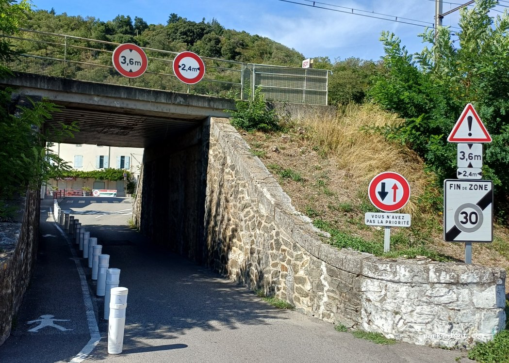 Nous y sommes passés en vélo car impossible d’accéder au village par la 86 puis passer par le petit tunel comme avant, car ils ont réduit le passage (3,60 de haut sur 2,40 de large) Il faut arriver au village par la 86E