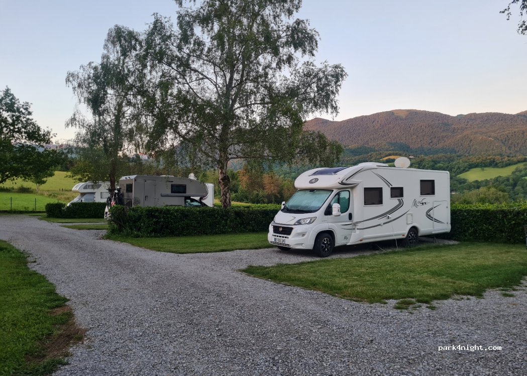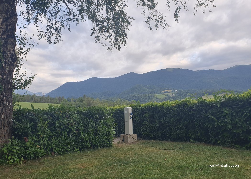 Very good parking up with mountain views. Reasonably flat spacious pitches separated by hedges. Very quiet and peaceful night. Great showers with plenty of hot water. Some congestion when leaving, slightly difficult to get out if someone using emptying area, otherwise all good. Would recommend and would return.