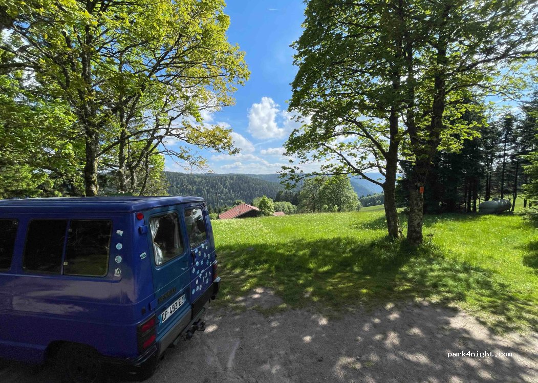 Quiet place with a beautiful view of the forest, easily accessible by van. Large space to park in the heart of the forest and a view if you park at the edge of the forest. A few houses below. We hear the cowbells!